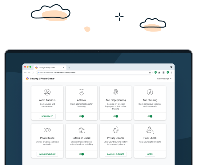 Navega con libertad y haz lo que quieras en línea con más certeza y determinación gracias a las funciones de seguridad integradas de Avast.